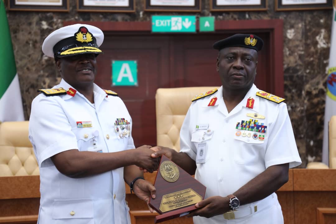 The Chief of the Naval Staff, Vice Admiral Emmanuel Ogalla has described Human Capacity Development as one of the major ingredients to realising NN’s operational and strategic objectives. The CNS stated this when participants of Course 32 of the National Defence College presented their research paper to him at the Naval Headquarters. The research paper which is part of requirements for the award of Fellow National Defence College (fdc) has the topic “Human Capacity Development and Operational Effectiveness: Strategic Options for the NN”. The CNS said the paper and its rich contents will aid in enacting effective policy and strategy that will step up the NN’s fight against criminals and economic saboteurs especially in Nigeria’s maritime domain.