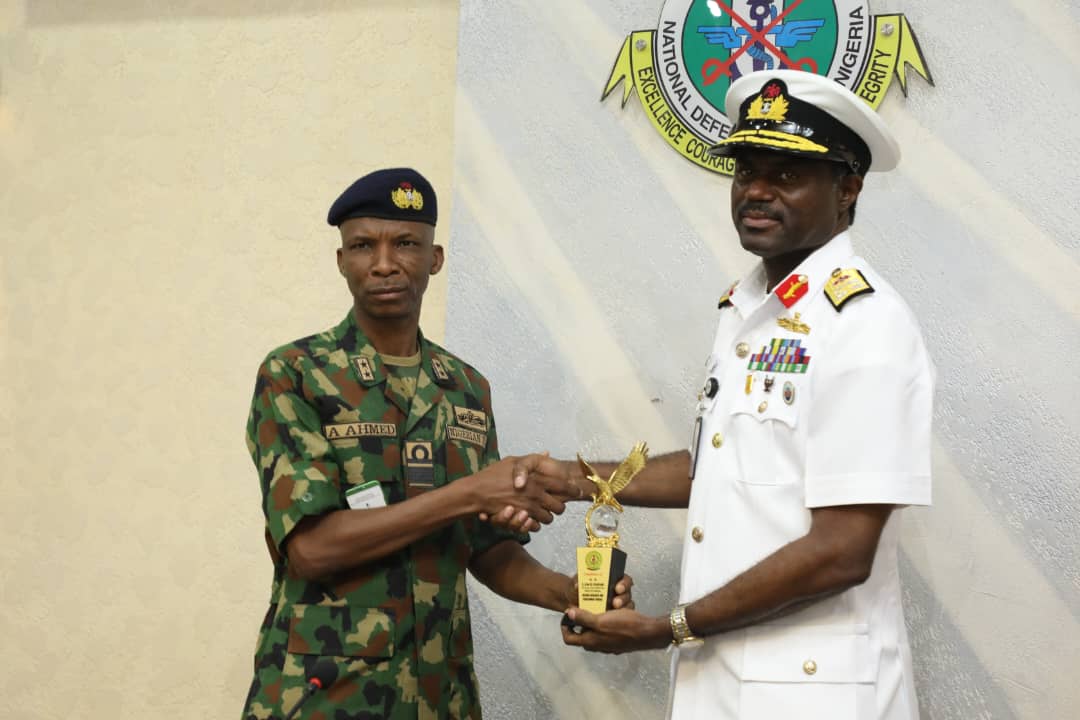 Rear Admiral KJ Odubanjo, Director General of the DRDB, paid a courtesy visit to the Commandant of the NDC, Rear Admiral Abdullahi Ahmed, on Wednesday, 26 November 2025. The visit was a key part of the Bureau’s ongoing efforts to strengthen ties between the two institutions. During the meeting, Rear Admiral Odubanjo emphasized the DRDB’s intention to work closely with researchers at the NDC’s Centre for Research and Strategic Studies (CRSS). He noted that enhanced cooperation is essential to bolster research that supports national security and strategic programs.