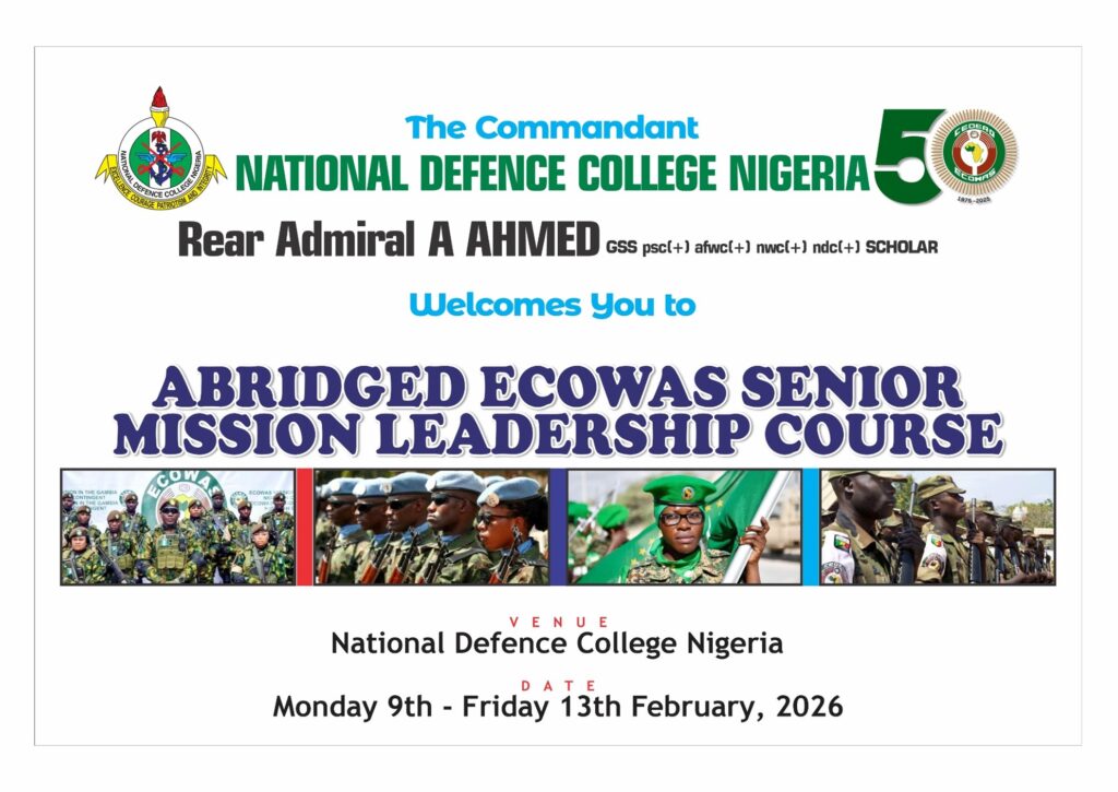 The Abridged ECOWAS Senior Mission Leaders Course (SMLC) is an upcoming high-level leadership development programme aimed at strengthening strategic leadership and management for Peace Support Operations (PSO) in West Africa. To be jointly delivered by the ECOWAS Peace Support Operations Division (PSOD) and the National Defence College (NDC), Nigeria, the programme is designed to respond to the increasing complexity of contemporary conflicts and the growing demand for integrated, multi-dimensional mission leadership. It is intended for senior military, police, and civilian personnel preparing for leadership roles in ECOWAS, AU, and UN peace operations.