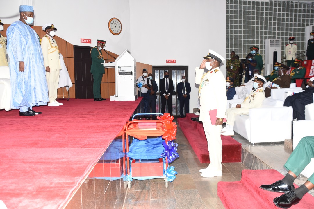 Rear Adm Mackson Kadiri added that the NDC Course 28 was duly trained and prepared for higher challenges of national security and defence having benefited from the statutory curriculum and special programmes in the College. He said, “A total of 107 participants were being presented for graduation today”. The participants are made up of 67 officers of the rank of Colonel in the Nigerian Army and equivalents in the Nigerian Navy and Nigerian Air Force, 7 Commissioners of Police from the Nigeria Police Force, 15 participants from the MDAs as well as 18 military officers from allied countries spread across Africa, Asia and the Americas”. Speaking on the international acceptability of NDC, the Commandant said “I am proud to state that since the inception of the College, Course 28 had the highest number of international participants”.