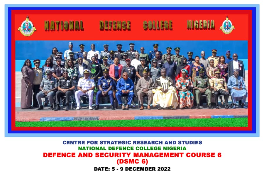 The Department of Defence and Security Studies (DDSS) of the Centre for Strategic Research and Studies (CSRS) has successfully concluded its Defence and Security Management Course 6 (DSMC 6). The one-week Course was designed for mid-career military officers, security agents and their civilian counterparts from strategic Ministries Departments and Agencies (MDAs) in Nigeria.