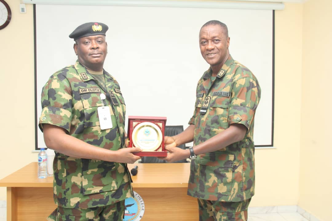 Rear Admiral Olotu was received on arrival at the airport by the Commandant AFWCN, Air Vice Marshall AG Kehinde.